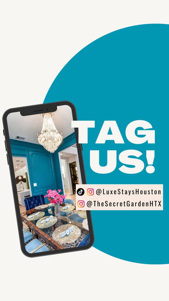 THE SPACE Bedroom 1: 2 Kings bed, 1 single bed and en-suite bath. Bedroom 2: 4 Full beds and jack and jill bathroom. Bedroom 3: 2 queen beds, 1 double futon, and jack and jill bathroom. Bedroom 4: 1 king bed Bedroom 5: 1 king bed Garage converted game room: 2 single rollaway beds Living Room: Open spacious living area with soaring 20 feet ceiling. Dining: Host in style with a dining table for 8, a breakfast nook for 6, and a kitchen island for 4—ideal for family dinners, brunches, or group celebrations. We welcome small, intimate gatherings with prior approval. Please inquire for details. A non-refundable gathering fee applies. ENTERTAINMENT READY The converted game room includes a pool table, pop a shot basketball, TV, and lounge space for hours of fun. BACKYARD OASIS Enjoy the hot tub, pergola, outdoor dining, and plenty of open space to relax and entertain. Lifesize games including connect 4 and chess! PICTURE-WORTHY DESIGN Floral and greenery walls, French-inspired wallpaper, and chic touches throughout make every corner a photo opportunity. COMFORT FOR EVERYONE With 14 beds (4 KINGs, 2 QUEENs, 4 FULLs, 1 futon sleeper, 1 single, 2 rollaways) across 5 bedrooms—plus Smart TVs in 4 rooms—this home sleeps up to 16 guests with ease. LUXURY UPGRADES Make your trip extra special with a private chef, décor styling, mobile bartender, mixology class, massage, or facial. CONVENIENT PARKING Driveway fits up to 6 cars, plus limited street parking in front. WHY GUESTS LOVE IT -Spacious and elegant design for groups -Family- and celebration-friendly layout -Picture-worthy photo spots -Close to Downtown Houston, NRG, and top attractions See more on our Socials: @LuxeStaysHouston