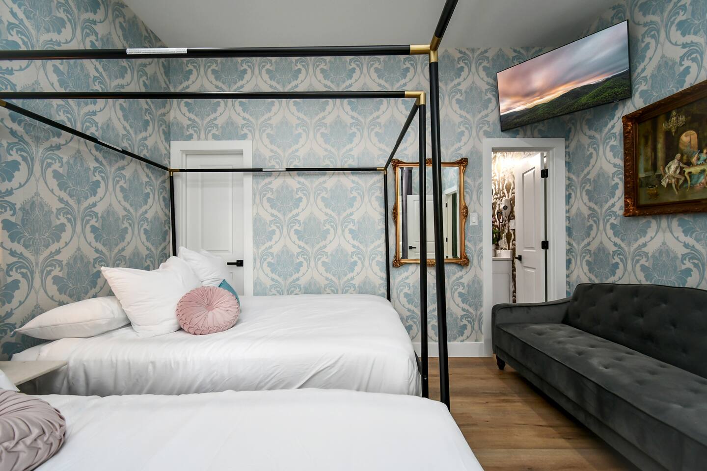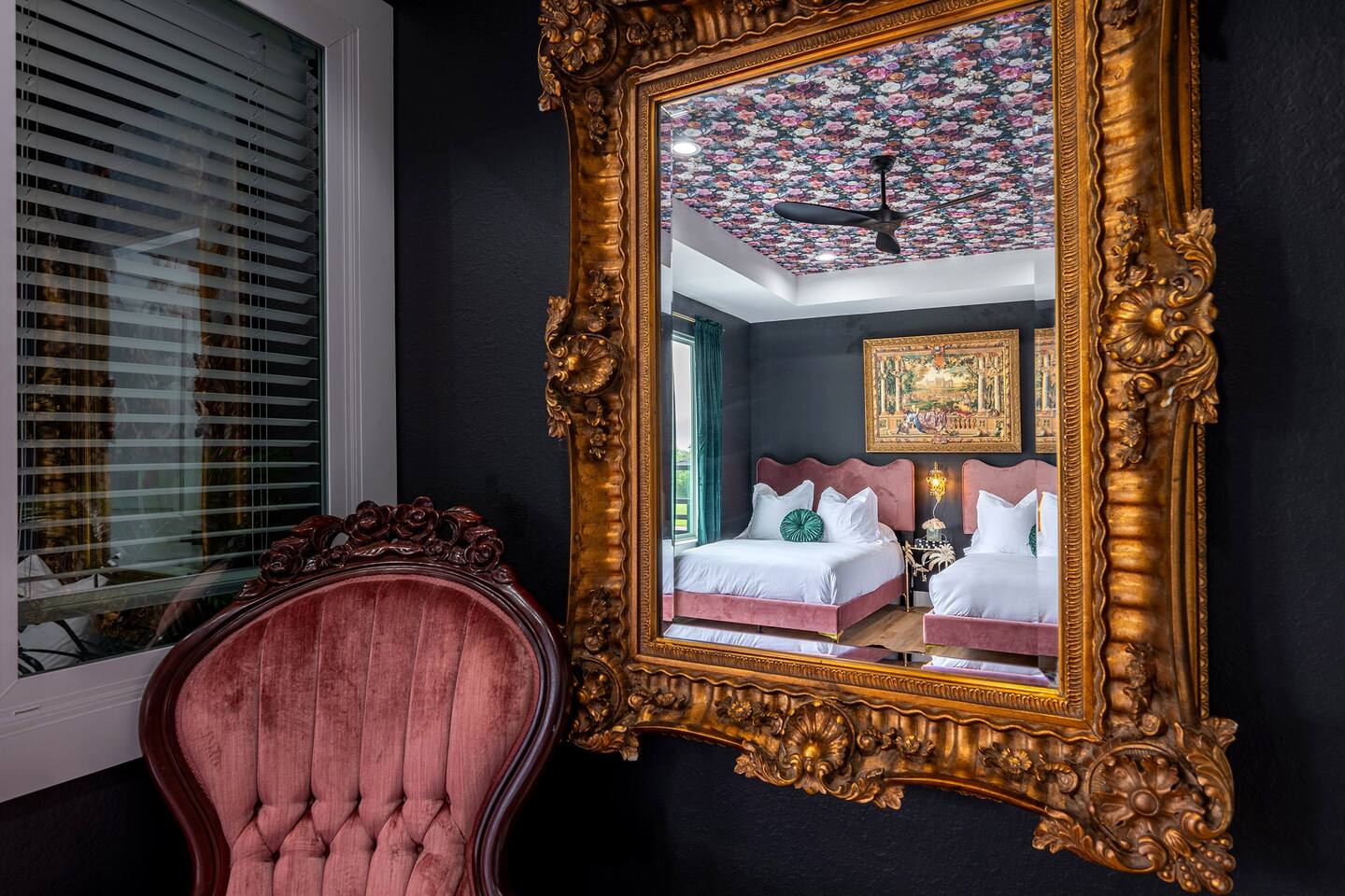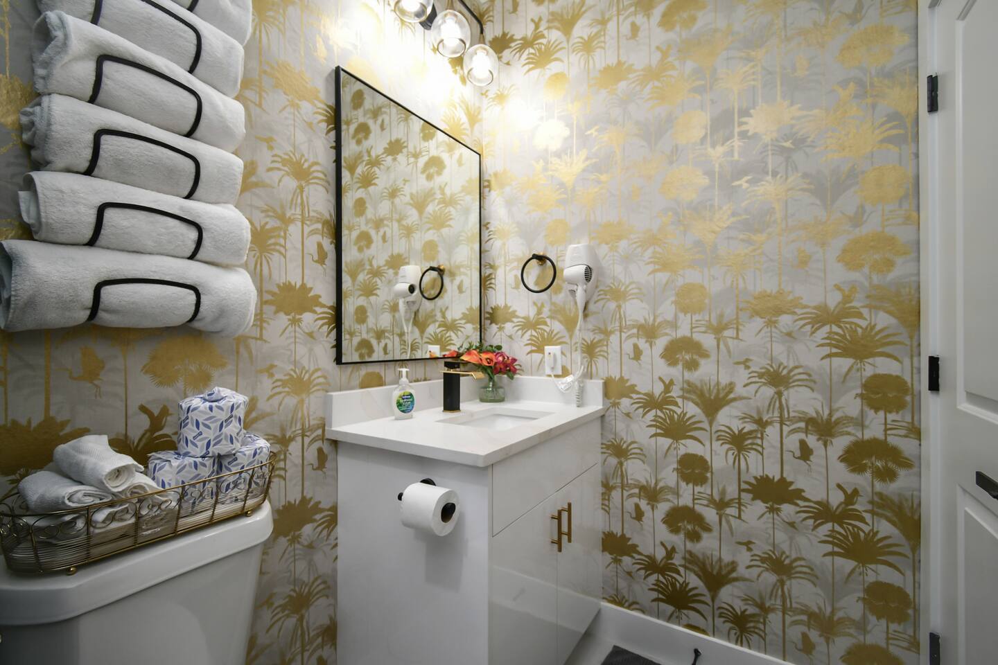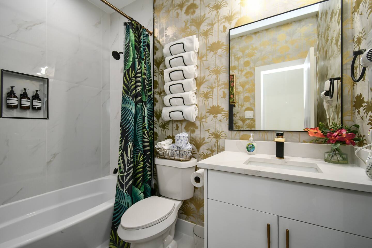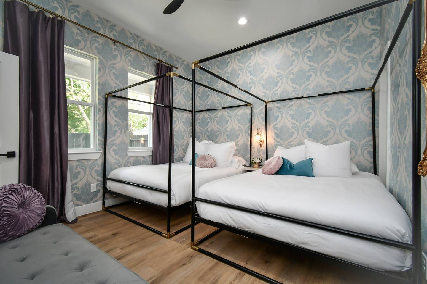 THE SPACE Bedroom 1: 2 Queen beds, 1 futon bed and en-suite bath. Bedroom 2: 1 king bed Bedroom 3: 1 king bed Bedroom 4: 2 Full beds, 1 single bed, 1 double futon bed, 1 rollaway bed and en-suite bath. Living room: 1 double futon bed and 1 single rollaway bed (stored in laundry room). PERFECT FOR ENTERTAINING Enjoy a dining room that seats 10, plus a kitchen island with seating for 4—ideal for group meals, holiday feasts, and special celebrations. ENTERTAINMENT & RELAXATION Challenge friends in the well-appointed game room, then step outside to the spacious backyard featuring a pergola, hot tub, and outdoor dining for the perfect blend of fun and relaxation. CHIC AESTHETIC French-inspired wallpaper, curated décor, and thoughtful design touches throughout create an elegant, welcoming atmosphere. COMFORTABLE ACCOMMODATIONS With 12 beds across multiple bedrooms—2 KINGs, 2 QUEENs, 2 FULLs, 3 futon sleepers, and 3 singles—this retreat sleeps up to 16 guests in total comfort. Each bedroom is equipped with a Smart TV (40–65 inches), making it easy to relax and unwind. PHOTO-WORTHY BACKDROPS Selfie walls with florals and greenery provide perfect photo opportunities, making this home ideal for capturing lasting memories. LUXURY ADD-ONS Customize your stay with exclusive LuxeStays Houston upgrades, including a private chef, décor services, mobile bartender, mixology class, massage, or facial. GUEST AMENITIES To ensure a stress-free start to your stay, we provide a complimentary starter pack of essentials such as toilet paper, paper towels, and trash bags. Once the pack is depleted, guests may replenish as needed, at their own expense. PARKING Driveway accommodates up to 6 vehicles (depending on size), with only 1 spot for parking available directly in front of the home. Please no parking on the grass. Out of respect for neighbors, parking is limited to designated spaces. We kindly request that you note, for security and liability purposes, guest access to the garage is unfortunately not available. We appreciate your understanding and hope to provide you with a pleasant and safe parking experience. WHY GUESTS LOVE IT -Spacious, elegant design perfect for groups -Family- and celebration-friendly layout -Multiple photo-worthy photo spots -Central Houston location near Downtown, NRG, and top attractions See more on our Social: @LuxeStaysHouston